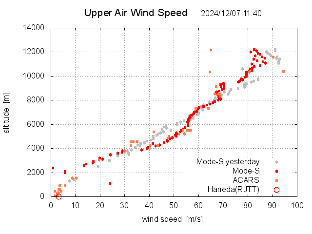 高層の気象観測は天気予報に欠かせないものです。気象庁ではラジオゾンデに観測機器をつけ、1日に2回観測しています。リアルタイムに高層の気象データを得る方法として、航空機が使えないか、トライしています。多数の航空機からのデータを集計すれば、リアルタイムに近いデータが得られます。いままでACARSのデータを用いていましたが、2024年5月.から、2を追加しました。